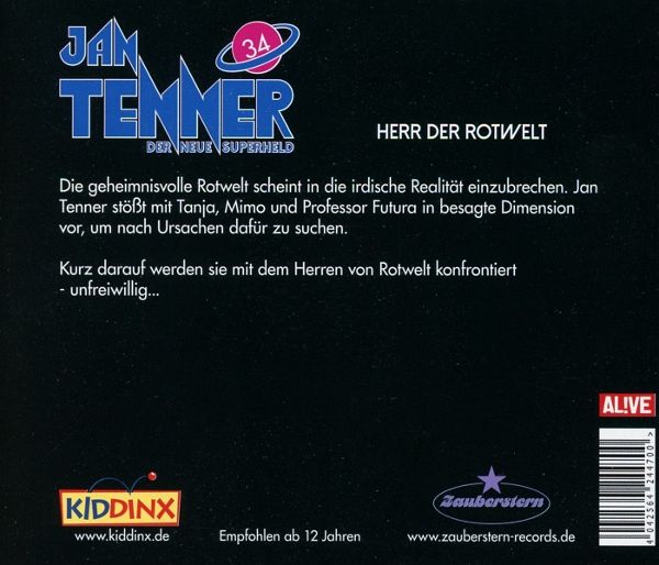 Die geheimnisvolle Rotwelt scheint in die irdische Realität einzubrechen. Jan Tenner stößt mit Tanja, Mimo und Professor Futura in besagte Dimension vor, um nach Ursachen dafür zu suchen. Kurz darauf werden sie mit dem Herren von Rotwelt konfrontiert - unfreiwillig... Die Rollen und ihre Sprecher: Jan Tenner sen.: Lutz Riedel, Laura: Marianne Groß, Jan Tenner jr.: Florian Clyde, Lara: Sarah Riedel, Tanja: Olivia Büschken, Prof. Futura: Kaspar Eicherl, General Forbett: Thomas Kästner, Erzähler: Till Hagen, Mimo Nico Nothnagel, Cullen - Patrick Suhm, Harper - Chantal Busse, Admiralin: Karen Schulz-Vobach, Emokry: Dietmar Wunder, AndroMEDa: Magdalena Höfner, Prof. Zweistein: Detlef Bierstedt.