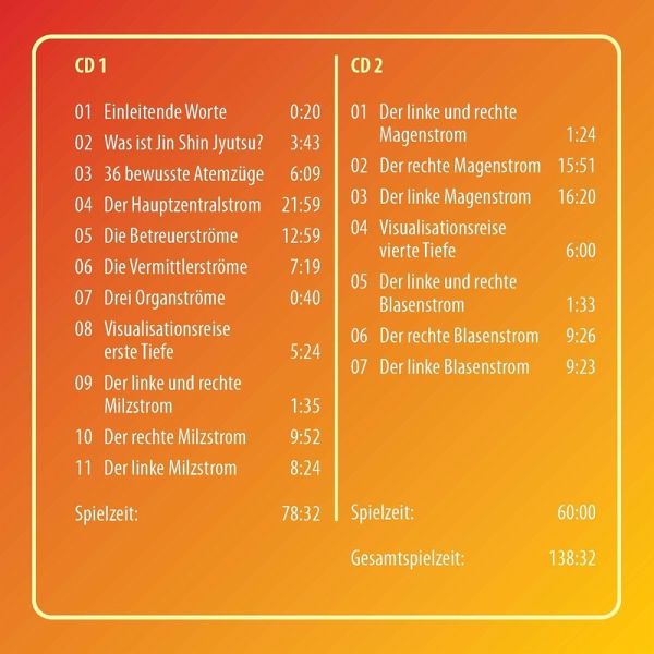 Dieses Audio-Programm auf zwei CDs dient dem Hörer als perfekter Leitfaden, um die ursprüngliche Fähigkeit des intuitiven Heilens zu erfahren. Entspannungs- und Atemübungen bereiten auf den Prozess der Selbstheilung vor. Die praktischen Griffe zur Harmonisierung der Lebensenergie kann man beim Zuhören sofort mit seinen eigenen Händen anwenden. Die hochwertige Aufnahmequalität mit professioneller Sprecherin bietet höchsten Hörkomfort. Die beiden Audio-CDs werden im hochwertigen Digi-Pack angeboten.