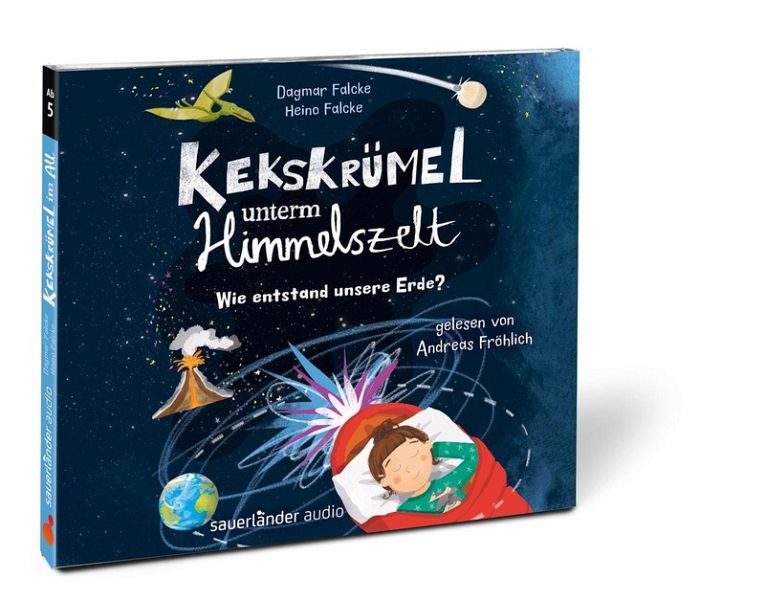 Eine Reise zu den Anfängen des Lebens und der Entstehung unserer Erde 'Papa, wie entstand eigentlich das Leben auf unserer Erde?', ist eine von Janas großen Abendfragen. Angesichts des Wunders der Natur fühlt sie sich klein wie ein Kekskrümel. Zusammen mit ihrem Papa macht Jana eine fantastische Zeit- und Zeltreise, um zu erleben, wie die Erde und das Klima entstanden sind. Mit Fahrrad und Zelt reisen die beiden Abenteurer in die Vulkaneifel, wo sie jeden Tag andere Phänomene entdecken, die etwas über die Entstehung der Erde erzählen: Sprudelwasser, Fossilien, Mare, Vulkankrater und ein versteinertes Meer. Astrophysiker Heino Falckeund seine Frau, Grundschulpädagogin Dagmar Falcke , nehmen Kinder ab 5 mit auf eine Reise zu den Anfängen des Lebens. Ganz gemütlich vom Kinderzimmer oder Zelt aus. Liebevolle Dialoge zwischen Jana und ihrem Papa vermitteln Komplexes kindgerecht und verständlich. Ein spannendes MINT-Hörsachbuch, das auch philosophische Fragen streift. * Expertenwissen für Kinder von Astrophysiker Heino Falcke und seiner Frau, der Grundschulpädagogin Dagmar Falcke * Für alle Fans von Kekskrümel im All, neugierige Kinder und Familien Andreas Fröhlich erlangte als Bob Andrews der Drei ???Kultstatus und gehört spätestens seit seinen Eragon-Interpretationen zu den beliebtesten Sprechern hierzulande. Mit warmen Timbre schlüpft er in die Rolle des gewitzten Physikers und sorgt für himmlische Kuschelstimmung.