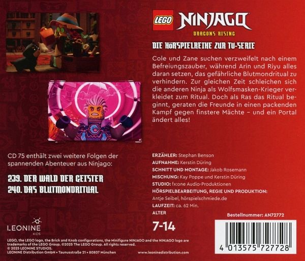 | 14 | LEGO Ninjago (CD 75): Der Wald der Geister (Folge 239) / Das Blutmondritual (Folge 240) | 00:03:05 | |