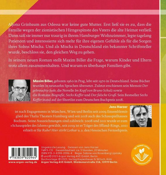 Die Welt der russisch-jüdischen Familie aus Hamburg, um die es in Maxim Billers neuem Roman Mama Odessa geht, ist voller Geheimnisse, Verrat und Literatur. Wir hören aber auch ein kluges, schönes und wahrhaftiges Hörbuch über einen Sohn und eine Mutter, beide Schriftsteller, die sich lieben, wegen des Schreibens immer wieder verraten - und einander trotzdem nie verlieren.