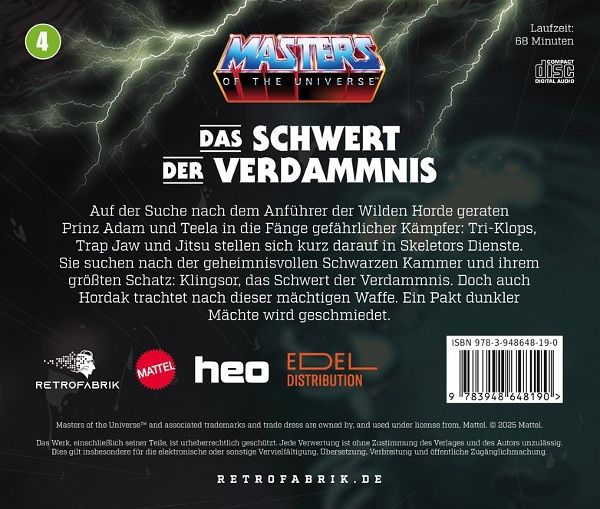 Eine epische Rückkehr in die Welt von Masters oftheUniverse! Taucht ein in eine Welt voller Abenteuer, Mysterien und unvergesslicher Charaktere mit derbrandneuen Hörspielserie, die die zeitlosen Geschichten von He-Man, Skeletorund ihren Verbündeten und Feinden auf völlig neue Weise zum Leben erweckt. Auf der Suche Eine epische Rückkehr in die Welt von Masters oftheUniverse! Taucht ein in eine Welt voller Abenteuer, Mysterien und unvergesslicher Charaktere mit derbrandneuen Hörspielserie, die die zeitlosen Geschichten von He-Man, Skeletorund ihren Verbündeten und Feinden auf völlig neue Weise zum Leben erweckt. Auf der Suche nach dem Anführer der Wilden Horde geraten Prinz Adam und Teelain die Fänge gefährlicher Kämpfer: Tri-Klops, Trap Jawund Jitsu stellen sich kurz darauf in SkeletorsDienste. Sie suchen nach der geheimnisvollen Schwarzen Kammer und ihrem größten Schatz: Klingsor, das Schwert der Verdammnis. Doch auch Hordaktrachtet Taucht ein in eine Welt voller Abenteuer, Mysterien und unvergesslicher Charaktere mit derbrandneuen Hörspielserie, die die zeitlosen Geschichten von He-Man, Skeletorund ihren Verbündeten und Feinden auf völlig neue Weise zum Leben erweckt. Auf der Suche nach dem Anführer der Wilden Horde geraten Prinz Adam und Teelain die Fänge gefährlicher Kämpfer: Tri-Klops, Trap Jawund Jitsu stellen sich kurz darauf in SkeletorsDienste. Sie suchen nach der geheimnisvollen Schwarzen Kammer und ihrem größten Schatz: Klingsor, das Schwert der Verdammnis. Doch auch Hordaktrachtet nach dieser mächtigen Waffe. Ein Pakt dunkler Mächte wird geschmiedet.nach dem Anführer der Wilden Horde geraten Prinz Adam und Teelain die Fänge gefährlicher Kämpfer: Tri-Klops, Trap Jawund Jitsu stellen sich kurz darauf in SkeletorsDienste. Sie suchen nach der geheimnisvollen Schwarzen Kammer und ihrem größten Schatz: Klingsor, das Schwert der Verdammnis. Doch auch Hordaktrachtet Eine epische Rückkehr in die Welt von Masters oftheUniverse! Taucht ein in eine Welt voller Abenteuer, Mysterien und unvergesslicher Charaktere mit derbrandneuen Hörspielserie, die die zeitlosen Geschichten von He-Man, Skeletorund ihren Verbündeten und Feinden auf völlig neue Weise zum Leben erweckt. Auf der Suche nach dem Anführer der Wilden Horde geraten Prinz Adam und Teelain die Fänge gefährlicher Kämpfer: Tri-Klops, Trap Jawund Jitsu stellen sich kurz darauf in SkeletorsDienste. Sie suchen nach der geheimnisvollen Schwarzen Kammer und ihrem größten Schatz: Klingsor, das Schwert der Verdammnis. Doch auch Hordaktrachtet