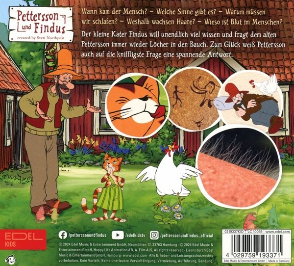 Der kleine Kater Findus will unendlich viel wissen und fragt dem alten Pettersson immer wieder Löcher in den Bauch. Zum Glück weiß Pettersson auch auf die kniffligste Frage eine spannende Antwort. Inhalt: - Wann kam der Mensch? - Welche Körperteile gibt es? - Welche Sinne gibt es? - Wieso ist Blut im Menschen? - Weshalb wachsen Haare? - Warum müssen wir schlafen?