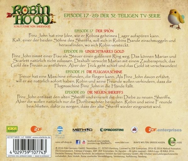 Episode 19: Die Flugmaschine: Trevor hat eine Maschine erfunden, die fliegen kann. Als Prinz John davon erfährt, will er sie natürlich sofort haben. Robin und seine Freunde wollen verhindern, dass die Flugmaschine Prinz John in die Hände fällt.