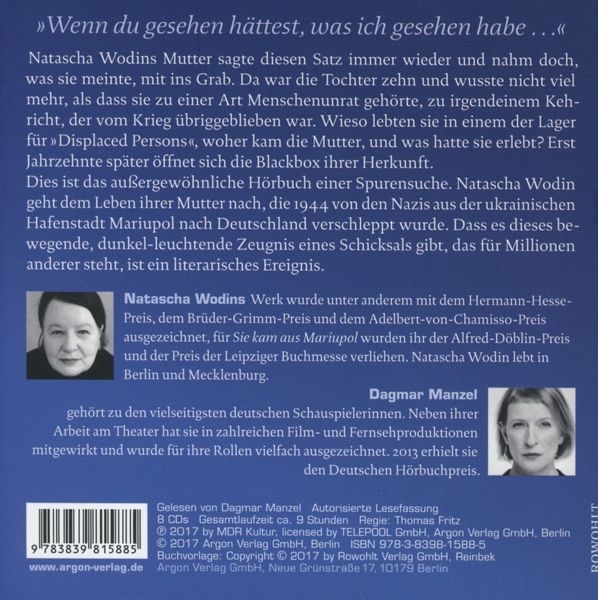 In ihrer Dankesrede zum Preis der Leipziger Buchmesse 2017 hat die Schriftstellerin Natascha Wodin auf die Ironie des Schicksals hingewiesen. Ihre Mutter hätte sich nicht träumen lassen, sagte sie, dass ausgerechnet hier ein Bild von ihr auf der Bühne präsentiert würde, am Standort einer ehemaligen Waffenfabrik des Flick-Konzerns, in der sie gegen Kriegsende unter erbärmlichsten Umständen als russische Zwangsarbeiterin für die Nazis arbeiten musste. In dem ausdrücklich nicht als Roman firmierenden Buch «Sie kam aus Mariupol» gibt ihre Tochter diesem Schicksal belletristisch eine beeindruckende literarische Stimme. Schon der Titel deutet darauf hin, hier geht es um eine Lebensgeschichte, die an einem abgelegenen Ort ihren Anfang nimmt, am fernen Asowschen Meer.