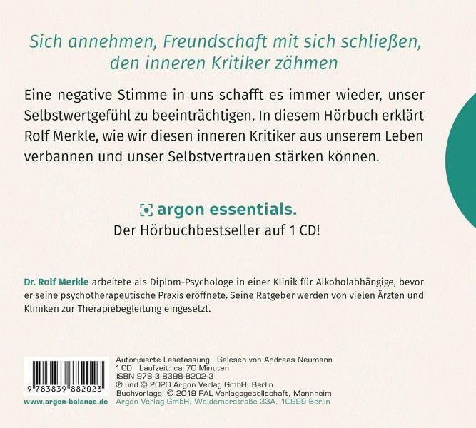 Eine negative Stimme in uns schafft es immer wieder, unser Selbstwertgefühl zu beeinträchtigen. In diesem Hörbuch zeigt uns Dr. Rolf Merkle, wie wir diesen inneren Kritiker zähmen und unser Selbstvertrauen stärken können.