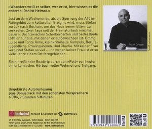 Ein rasanter Roadtrip durch den "Pott" von heute, urkomisch, voller Wehmut und Tiefgang. Frank Goosens neues Hörbuch zelebriert ein Heimatwochenende voller skurriler Figuren mit Fußball und Musik, mit großen Entscheidungen und viel Gefühl.