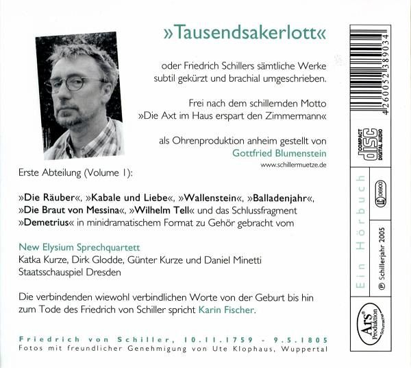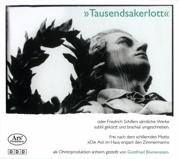 Friedrich Schillers sämtliche Werke subtil gekürzt und brachial umgeschrieben. Dabei wechseln sich informative Darstellung seiner Biografie mit der Umdichtung und Verballhornung seiner Werke ab. Der alte Schiller soll einem jungen Publikum näher gebracht werden. So spart man nicht mit Anglizismen, Vergleichen zur heutigen Zeit und Politik und versucht Schiller als aktuellen Klassiker zu verkaufen. Ergänzt wird das Hörspiel durch Musikeinlagen, die direkt oder manchmal auch nur ganz subtil etwas mit Schillers Leben und Wirken gemein haben. Da erklingt z.B. die von Beethoven vertonte "Ode an die Freude" neben einem Song von Bob Dylan, eine Arie von Giuseppe Verdi neben dem Adagio für Nagelgeige von Friedrich Rust.