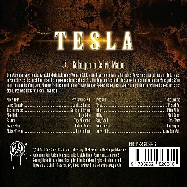 Nikola Tesla - Ein Genie unter Strom! Dem Wunsch Moriartys folgend, macht sich Nikola Tesla auf den Weg nach Cedric Manor. Er vermutet, dass Mata Hari auf dem Anwesen gefangen gehalten wird. Tesla ist sich durchaus bewusst, dass er sich mit dieser Rettungsaktion seinem Feind ausliefert. Allerdings kann Tesla nicht ahnen, dass ihm auch noch von anderer Seite große Gefahr droht. In London beauftragt James Moriarty Frankenstein und Aleister Crowley damit, ein System zu bauen, das die Weiterleitung von Energie verstärkt. Frankenstein ist sich sicher, dass Tesla nichts von diesem Auftrag weiß.