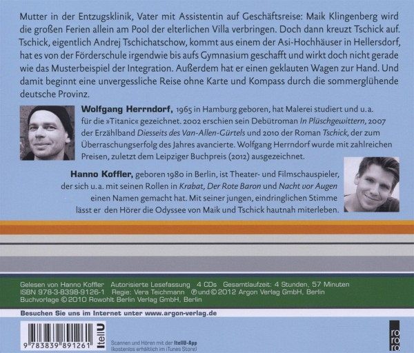 Dabei sind die Jungs an sich sehr unterschiedlich. Tschick kommt ursprünglich aus Russland und lebt in einem sozialen Brennpunkt und hat es mit viel Glück aufs Gymnasium geschafft, während Mike in einer Villa lebt, aber dort alles andere als glücklich ist. Seine Mutter ist krank und aktuell in einer Entzugsklinik, sein Vater hat eine Affäre mit seiner Sekretärin und auch sonst fühlt er sich oftmals sehr einsam.