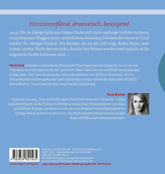 Nummer-1-Bestseller-Autorin Hera Lind erzählt die wahre Geschichte der Schwarzmeer-Deutschen Lydia, die erst 16 Jahre alt ist, als sie in einen sibirischen Gulag verschleppt wird.