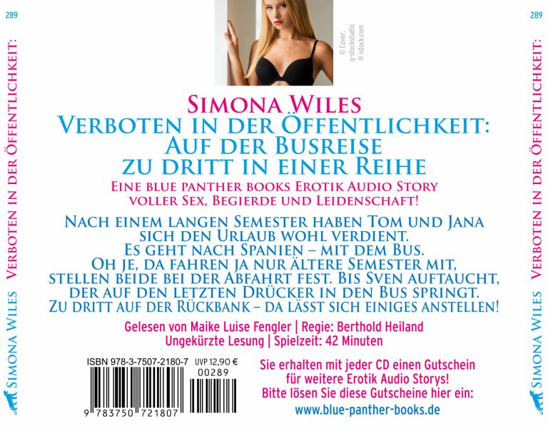 Nach einem langen Semester haben Tom und Jana sich den Urlaub wohl verdient. Es geht nach Spanien - mit dem Bus. Oh je, da fahren ja nur ältere Semester mit, stellen beide bei der Abfahrt fest. Bis Sven auftaucht, der auf den letzten Drücker in den Bus springt. Zu dritt auf der Rückbank - da lässt sich einiges anstellen!Gelesen von Maike Luise FenglerRegie: Berthold HeilandUngekürzte LesungSpielzeit: 42 MinutenDiese Ausgabe ist vollständig, unzensiert und enthält keine gekürzten erotischen Szenen.