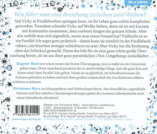 Seit Vicky in Parallelwelten springen kann, ist ihr Leben ganz schön kompliziert geworden. Trotzdem schwebt Vicky auf Wolke Sieben, denn sie ist seit kurzem mit Konstantin zusammen, dem coolsten Jungen der ganzen Schule. Aber wie verhält man sich eigentlich, wenn man einen Freund hat? Vielleicht ist so eine Parallel-Ich sogar ganz praktisch - damit kann sie nämlich in der Parallelwelt »üben«, ein bisschen weniger schüchtern zu sein! Aber Vicky hat die Rechnung ohne das Schicksal gemacht. Denn das hält für sie eine ganz schön große Überraschung bereit, als sie aus ihrer ganz persönlichen »Test-Umgebung« zurückkehrt ...