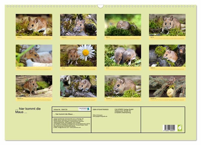 QUALITÄT - Hochwertiger Fotokalender mit 12 wunderschönen Motiven auf lichtbeständigem Bilderdruckpapier, robuste Spiralbindung mit Aufhängebügel.NACHHALTIG - deutliche Abfallreduzierung durch bedarfsgerechte Einzelstückfertigung, umweltfreundliches FSC-zertifiziertes Papier, Produktion in Deutschland, klimabewusste Logistik.PERFEKTES GESCHENK - Kalender für Freunde und Familie, für Kinder und Erwachsene, jung und alt, zu Weihnachten, Geburtstag oder zwischendurch.VIELFALT - Bildkalender in verschiedenen Formaten, z.B. DIN A5, DIN A4, DIN A3 sowie DIN A2. Ob Naturmotiv, Gemälde oder Fotos, ideal für ein persönliches Wohlfühlambiente.Zauberhafte Bilder einer kleinen Maus von Autor(in): GUGIGEI