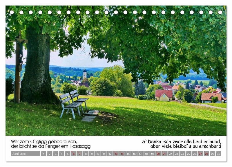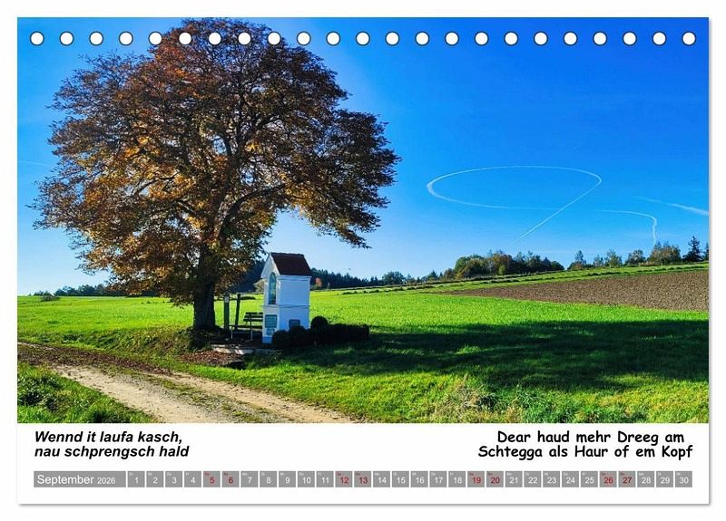 Die schwäbische Sprache wimmelt nur so von Redewendungen, Sprichwörtern und Lebensweisheiten. Ob direkt, hintersinnig oder makaber, die Vielfalt der schwäbischen Ausdrucksweise lässt einen nachdenken oder schmunzeln. Die Bilder stammen alle aus den Stauden, eine wunderschöne Kulturlandschaft im Westen von Augsburg. Ein Kalender, der überall für gute Laune und jede Menge Schmunzeln sorgen wird.