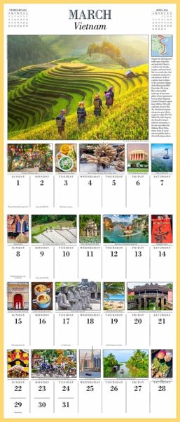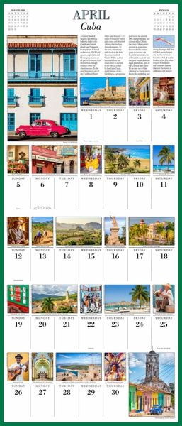 * AN ITINERARY IN PHOTOS: Each monthly spread includes dozens of full-color images accompanied by engaging text packed with history, highlights, maps, and traveler’s tips. * BUCKET LIST DESTINATIONS: Visit some of the world’s most beautiful places without going anywhere. * AMAZING GIFT: Travel obsessives will love the 12” x 14” picture-a-day format, with more photography and content in every month. * NOW PLASTIC-FREE!: Workman wall calendars are completely plastic-free! Now printed with an extended paper flap closed with a fully recyclable seal—no more shrink-wrap!
