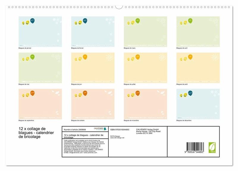 C'est bien connu, le rire est le meilleur remède. Ce calendrier au design joyeux est une excellente façon de faire rire un de vos proches. Pour chaque mois de l'année, créez une page de blagues individuelles et colorées. Il peut être utilisé par exemple comme calendrier de bureau ou comme calendrier mural. ET VOILÀ COMMENT ÇA MARCHE : Choisissez vos blagues préférées et écrivez-les ou imprimez-les sur du papier blanc ou coloré. Utilisez des crayons de couleur, puis découpez les fiches de vos blagues en différentes formes ... Collez maintenant vos fiches sur les 12 pages du calendrier. Faites preuve de créativité ! ASTUCE : n'écrivez pas directement sur le papier d'impression du calendrier, car la surface brillante du papier pourrait empêcher le stylo d'adhérer.