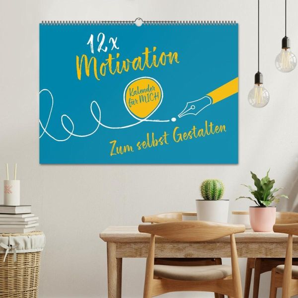 Schenken Sie sich selbst oder einem lieben Menschen 12 Monate Inspiration zur Selbstmotivation. Ein geeigneter Platz ist z.B. als Tischkalender auf Ihrem Schreibtisch oder als Wandkalender an einer Stelle an der Wand, an der Sie oft vorbeigehen. Von DIN A5 - DIN A2 können Sie jedes beliebige Format wählen.HINWEIS:Bitte beachten Sie, dass das Druckpapier des Kalenders für Buntstifte, Bleistift, normale Filzstifte usw. nicht geeignet ist, da diese abperlen. UND SO GEHT'S:Tonpapier, Briefpapier oder auch schlichtes weißes Papier in 12 für die weißen Textfelder passenden Rechtecke schneiden, beschriften und ggf. mit Zeichnungen gestalten.Besonders schön sieht die Schrift mit einem Kalligrafie-Stift oder farbigen Fineliner aus. Es gibt natürlich noch viele andere Gestaltungsmöglichkeiten. Die 12 fertig gestalteten Motivations-Bögen anschließend einfach in den Kalender einkleben. Evtl. noch Fotos, Illustrationen etc. dazu kleben.Auf jedem Kalenderblatt ist Platz für einen tiefgründigenSpruch, einen selbstverfassten Text oder Reim ... Die Möglichkeiten sind hier grenzenlos.Schenken Sie sich einfach selbst etwas oder verschenken Sie den Kalender. Wer so ein besonderes Geschenk erhält, wird über ein ganzes Jahr und auch länger Freude daran haben. Garantiert.Wir wünschen viel Spaß bei der Gestaltung und schöne Momente beim Auspacken dieses Geschenk-Kalenders.