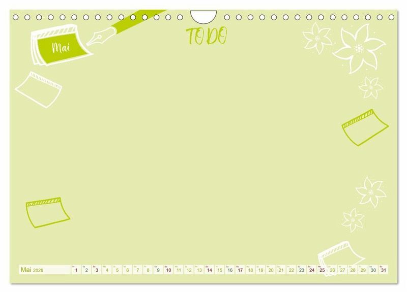 Mit diesem Kalender erhalten Sie eine Post-Its-Pinnwand für jeden Monat. So haben Sie Ihre Termine und ToDo's stets im Blick. Ein geeigneter Platz ist z.B. als Tischkalender auf Ihrem Schreibtisch oder als Wandkalender an einer Stelle an der Wand, an der Sie oft vorbeigehen. Von DIN A5 - DIN A2 können Sie jedes beliebige Format wählen. Mit farbigen Post-Its gestalten Sie Ihre monatlichen Notizen.HINWEIS:Bitte beachten Sie, dass das Druckpapier des Kalenders für Buntstifte, Bleistift, normale Filzstifte u.s.w. nicht geeignet ist, da diese abperlen. UND SO GEHT'S:Besorgen Sie sich Post-Its-Blöcke - farbig oder neutral weiß und legen Sie diese mit einem Stift neben den Kalender.TIPP: verwenden Sie unterschiedliche Farben für verschiedene Bereiche: für Termine z.B. gelbe, für ToDo's blaue und für Besorgungen oder persönliche Erinnerungen pinke Post-Its. Oder auch unterschiedliche Größen für kurze und lange Texte ... Die Möglichkeiten sind hier vielseitig. Nicht jede Notiz hat nur einen Monat Gültigkeit? Kein Problem - übertragen Sie die Notiz einfach weiter auf das nächste Monatsblatt - so geht nichts Wichtiges verloren.Schenken Sie sich einfach selbst etwas, das Ordnung bringt in die Zettelwirtschaft und Ihnen Ihre Organisation erleichtert oder verschenken Sie den Kalender. Wer so ein besonderes Geschenk erhält, wird über ein ganzes Jahr etwas davon haben und sich vielleicht sogar entscheiden, im folgenden Jahr die neue Ordnung fortzuführen ...Wir wünschen viel Spaß bei der Gestaltung und schöne Momente beim Auspacken dieses Geschenk-Kalenders.