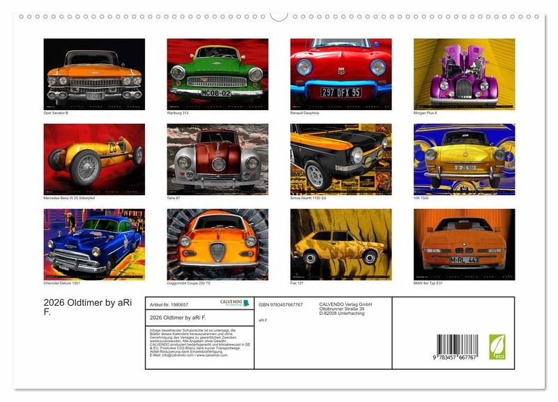 PREMIUM-LINIE - Brillanter Fotokalender mit 12 wunderschönen Motiven, Kunstdruck in Hochglanz in Museumsqualität.QUALITÄT - edle Materialien, stabile Rückwand mit 2 innovativen Einstecktaschen für eine optimale Präsentation an der Wand.NACHHALTIG - deutliche Abfallreduzierung durch bedarfsgerechte Einzelstückfertigung, umweltfreundliches FSC-zertifiziertes Papier, Produktion in Deutschland, klimabewusste Logistik.PERFEKTES GESCHENK - Kalender für Freunde und Familie, für Kinder und Erwachsene, jung und alt, zu Weihnachten, Geburtstag oder zwischendurch.Oldtimer-Kalender mit 14 Seiten von Autor(in): aRi F.