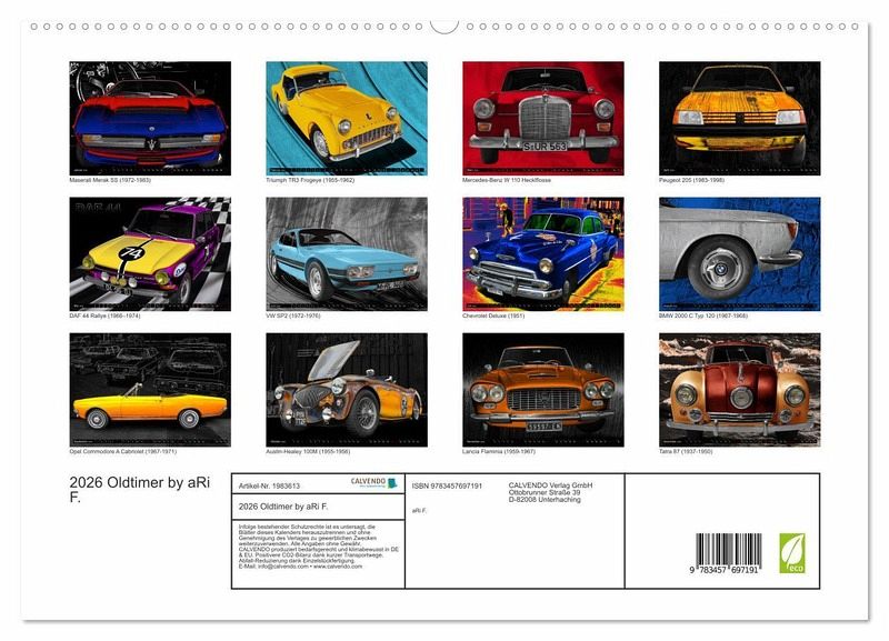 PREMIUM-LINIE - Brillanter Fotokalender mit 12 wunderschönen Motiven, Kunstdruck in Hochglanz in Museumsqualität.QUALITÄT - edle Materialien, stabile Rückwand mit 2 innovativen Einstecktaschen für eine optimale Präsentation an der Wand.NACHHALTIG - deutliche Abfallreduzierung durch bedarfsgerechte Einzelstückfertigung, umweltfreundliches FSC-zertifiziertes Papier, Produktion in Deutschland, klimabewusste Logistik.PERFEKTES GESCHENK - Kalender für Freunde und Familie, für Kinder und Erwachsene, jung und alt, zu Weihnachten, Geburtstag oder zwischendurch.Kunstfotografie mit Autoklassiker von Autor(in): aRi F.