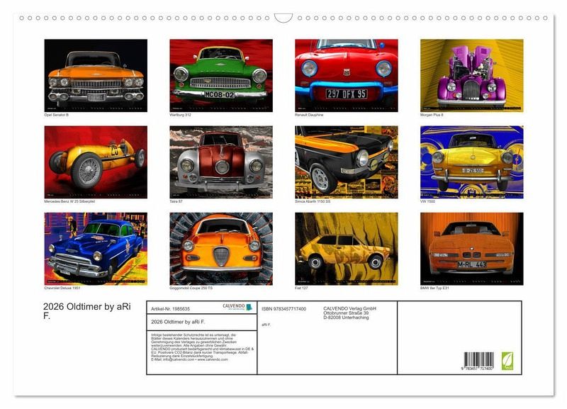 QUALITÄT - Hochwertiger Fotokalender mit 12 wunderschönen Motiven auf lichtbeständigem Bilderdruckpapier, robuste Spiralbindung mit Aufhängebügel.NACHHALTIG - deutliche Abfallreduzierung durch bedarfsgerechte Einzelstückfertigung, umweltfreundliches FSC-zertifiziertes Papier, Produktion in Deutschland, klimabewusste Logistik.PERFEKTES GESCHENK - Kalender für Freunde und Familie, für Kinder und Erwachsene, jung und alt, zu Weihnachten, Geburtstag oder zwischendurch.VIELFALT - Bildkalender in verschiedenen Formaten, z.B. DIN A5, DIN A4, DIN A3 sowie DIN A2. Ob Naturmotiv, Gemälde oder Fotos, ideal für ein persönliches Wohlfühlambiente.Oldtimer-Kalender mit 14 Seiten von Autor(in): aRi F.