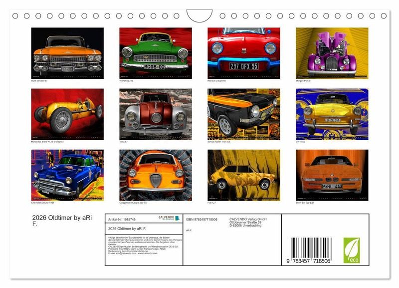 QUALITÄT - Hochwertiger Fotokalender mit 12 wunderschönen Motiven auf lichtbeständigem Bilderdruckpapier, robuste Spiralbindung mit Aufhängebügel.NACHHALTIG - deutliche Abfallreduzierung durch bedarfsgerechte Einzelstückfertigung, umweltfreundliches FSC-zertifiziertes Papier, Produktion in Deutschland, klimabewusste Logistik.PERFEKTES GESCHENK - Kalender für Freunde und Familie, für Kinder und Erwachsene, jung und alt, zu Weihnachten, Geburtstag oder zwischendurch.VIELFALT - Bildkalender in verschiedenen Formaten, z.B. DIN A5, DIN A4, DIN A3 sowie DIN A2. Ob Naturmotiv, Gemälde oder Fotos, ideal für ein persönliches Wohlfühlambiente.Oldtimer-Kalender mit 14 Seiten von Autor(in): aRi F.