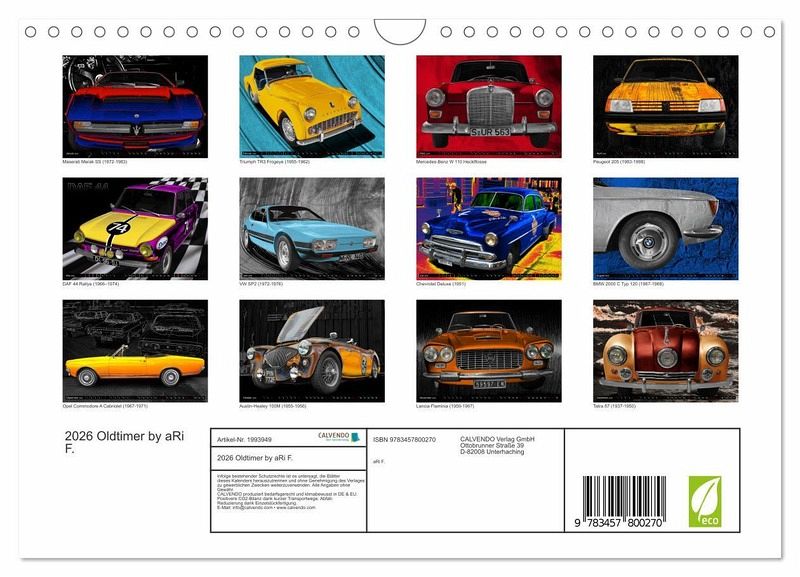 QUALITÄT - Hochwertiger Fotokalender mit 12 wunderschönen Motiven auf lichtbeständigem Bilderdruckpapier, robuste Spiralbindung mit Aufhängebügel.NACHHALTIG - deutliche Abfallreduzierung durch bedarfsgerechte Einzelstückfertigung, umweltfreundliches FSC-zertifiziertes Papier, Produktion in Deutschland, klimabewusste Logistik.PERFEKTES GESCHENK - Kalender für Freunde und Familie, für Kinder und Erwachsene, jung und alt, zu Weihnachten, Geburtstag oder zwischendurch.VIELFALT - Bildkalender in verschiedenen Formaten, z.B. DIN A5, DIN A4, DIN A3 sowie DIN A2. Ob Naturmotiv, Gemälde oder Fotos, ideal für ein persönliches Wohlfühlambiente.Kunstfotografie mit Autoklassiker von Autor(in): aRi F.