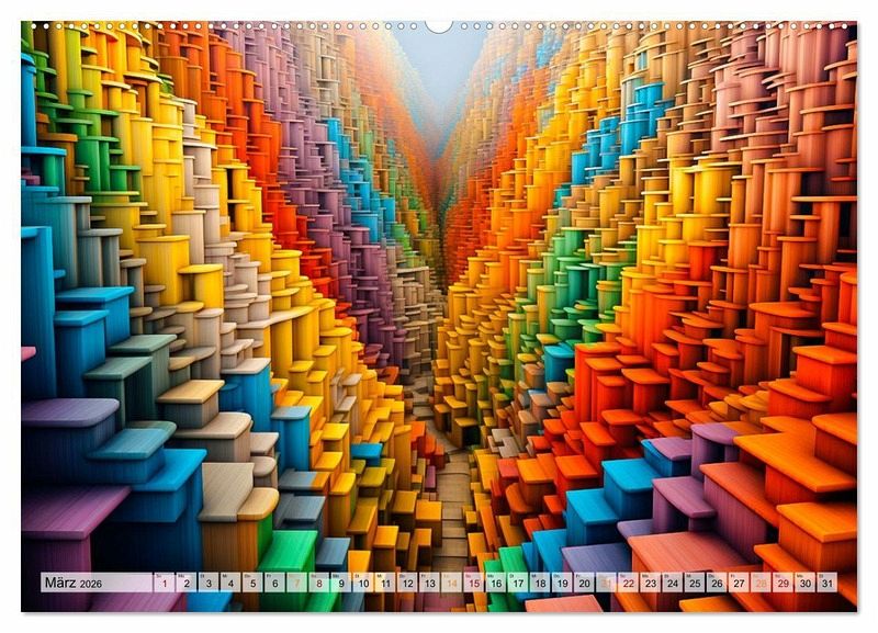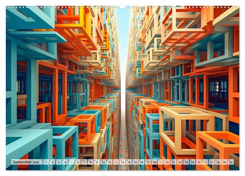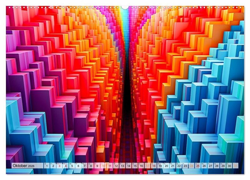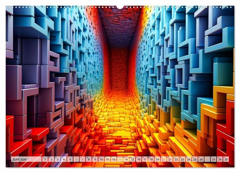 Jeder Monat enthüllt eine neue Dimension der Kreativität - von Quadraten bis hin zu geometrischen Formen, die miteinander verschmelzen. Diese Kunstwerke werden dich in ihren Bann ziehen und deine Fantasie anregen. Egal, ob du ein Kunstliebhaber, ein Träumer oder einfach nur auf der Suche nach einem einzigartigen Geschenk bist - unser "3D - Abstrakte und futuristische Illustrationen" Wandkalender wird dich begeistern und inspirieren.
