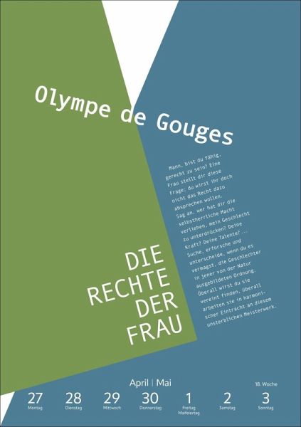 Seit Jahren gibt es zahlreiche Literaturkalender, hier ist nun ein Literaturkalender, der sich ausschließlich Schriftstellerinnen widmet. Woche für Woche wird eine internationale Schriftstellerin mit einem längeren Zitat vorgestellt. Neben bekannten Namen wie Gertrude Stein, Emily Brontë, Jenny
