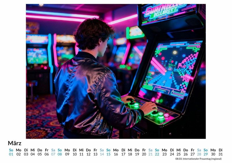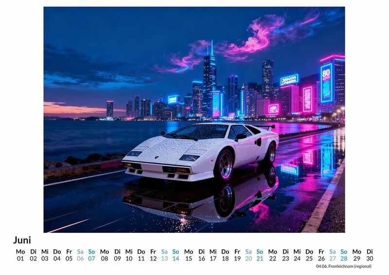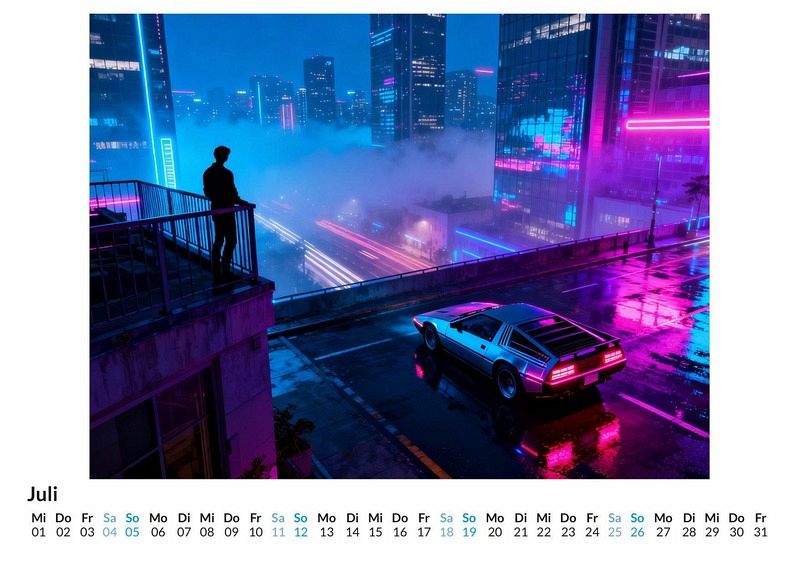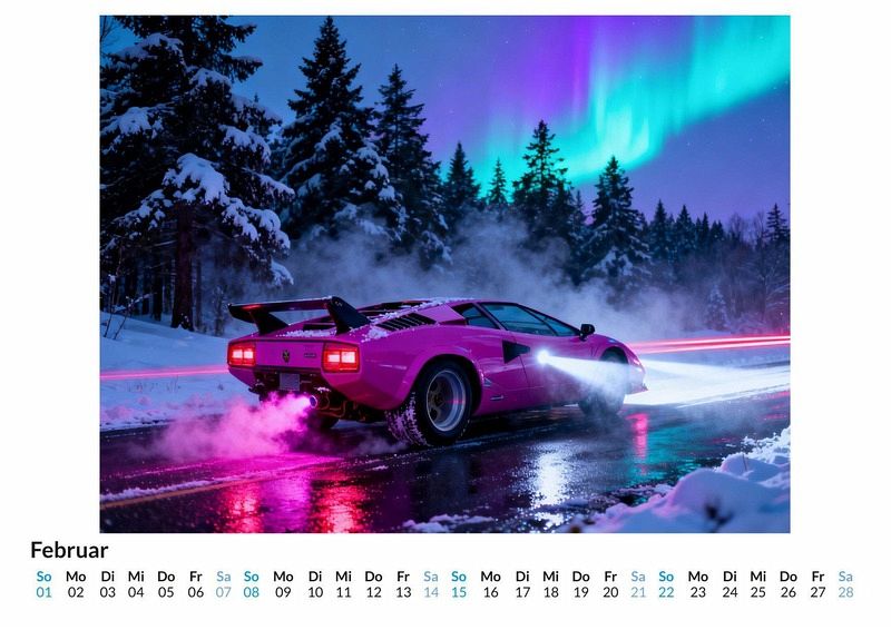 Die Nacht bricht herein und die Straßen leuchten in den Farben von Magenta, Cyan und leuchtendem Gelb. Ein Echo aus der Vergangenheit, verstärkt durch die pulsierenden Bässe des Synthwave, hallt durch die urbanen Schluchten. Dies ist die Welt des Kalenders "80er-Jahre Neon-Träume", eine Hommage an ein Jahrzehnt des visuellen Wagemuts und der elektronischen Klänge. Dieser Kalender ist eine ideale Wahl: Für Liebhaber der unverwechselbaren Ästhetik der 80er-Jahre. Für Anhänger von Synthwave und der dazugehörigen visuellen Kultur. Für Bewunderer klassischer Sportwagen in einem modernen, stilisierten Kontext. Der Kalender "80er-Jahre Neon-Träume" fängt diese besondere Atmosphäre ein. Zwölf Motive zeigen eine Welt, in der die Sonne untergegangen ist und die Lichter der Stadt die Hauptrolle spielen. Jedes Motiv wurde durch komplexe Algorithmen und digitale Synthese zum Leben erweckt, um eine Vision zu erschaffen, die sowohl vertraut als auch völlig neu wirkt. Die Bilder kombinieren die klaren Linien ikonischer Sportwagen mit der leuchtenden Farbpalette des Neons und der Weite futuristischer Landschaften. Was der Kalender bietet: Zwölf einzigartige Monatsmotive im Stil des Synthwave. Ein Wandkalender, der das ganze Jahr über als Blickfang dient. Eine Reise durch eine stilisierte Nacht voller Neon und Geschwindigkeit. Zusammenfassend ist der Kalender "80er-Jahre Neon-Träume" eine Hommage an eine Ära, die für ihren Mut zu Farbe und Form bekannt ist. Er ist ein Statement für alle, die das Zusammenspiel von Retro-Design und futuristischer Vision schätzen. Ein Blick auf die Monatsansichten lohnt sich, um die volle Wirkung der Kompositionen zu entdecken.
