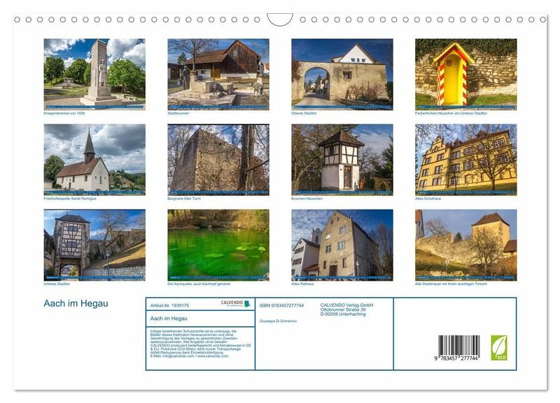 QUALITÄT - Hochwertiger Fotokalender mit 12 wunderschönen Motiven auf lichtbeständigem Bilderdruckpapier, robuste Spiralbindung mit Aufhängebügel.NACHHALTIG - deutliche Abfallreduzierung durch bedarfsgerechte Einzelstückfertigung, umweltfreundliches FSC-zertifiziertes Papier, Produktion in Deutschland, klimabewusste Logistik.PERFEKTES GESCHENK - Kalender für Freunde und Familie, für Kinder und Erwachsene, jung und alt, zu Weihnachten, Geburtstag oder zwischendurch.VIELFALT - Bildkalender in verschiedenen Formaten, z.B. DIN A5, DIN A4, DIN A3 sowie DIN A2. Ob Naturmotiv, Gemälde oder Fotos, ideal für ein persönliches Wohlfühlambiente.Malerische Kleinstadt im Hegau von Autor(in): Giuseppe Di Domenico