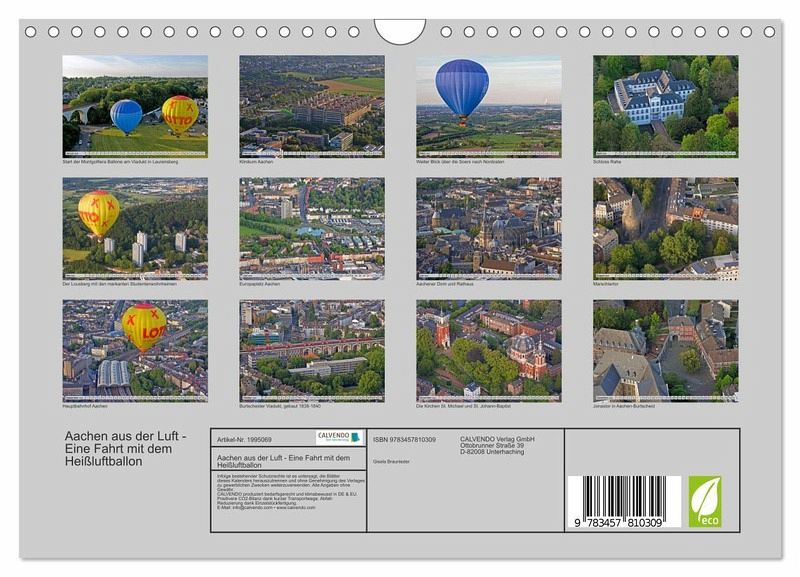 QUALITÄT - Hochwertiger Fotokalender mit 12 wunderschönen Motiven auf lichtbeständigem Bilderdruckpapier, robuste Spiralbindung mit Aufhängebügel.NACHHALTIG - deutliche Abfallreduzierung durch bedarfsgerechte Einzelstückfertigung, umweltfreundliches FSC-zertifiziertes Papier, Produktion in Deutschland, klimabewusste Logistik.PERFEKTES GESCHENK - Kalender für Freunde und Familie, für Kinder und Erwachsene, jung und alt, zu Weihnachten, Geburtstag oder zwischendurch.VIELFALT - Bildkalender in verschiedenen Formaten, z.B. DIN A5, DIN A4, DIN A3 sowie DIN A2. Ob Naturmotiv, Gemälde oder Fotos, ideal für ein persönliches Wohlfühlambiente.Von einem einzigartigen Aussichtspunkt die Sicht auf Aachen genießen von Autor(in): Gisela Braunleder