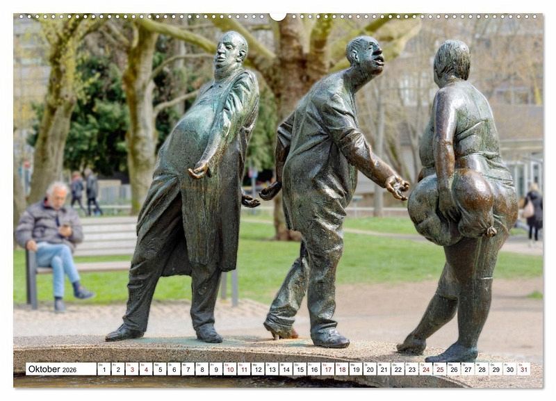 Oktober: Aachens wohl schönster Brunnen - lebensgroße Bronzefiguren zeigen den "Kreislauf des Geldes"