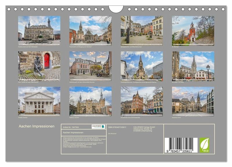 Verschenke das einzigartige Flair von Aachen! Unser Kalender entführt Freunde und Bekannte auf eine visuelle Reise durch die faszinierende Stadt. Von historischen Wahrzeichen bis hin zu versteckten Juwelen - jeder Monat präsentiert ein neues Kapitel der Aachener Schönheit. Bereite deinen Liebsten das ganze Jahr über Freude mit diesem Geschenk voller Erinnerungen und Inspiration!