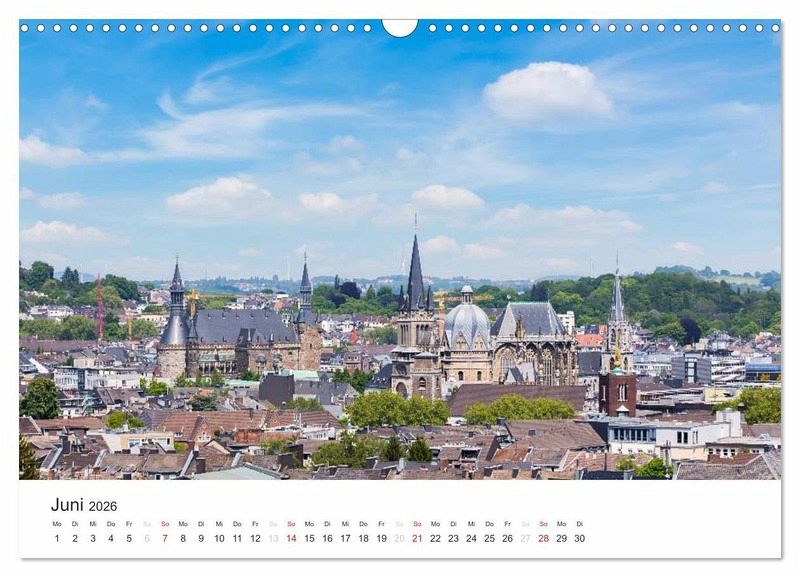 Juni: Blick auf Aachen mit Dom und Rathaus