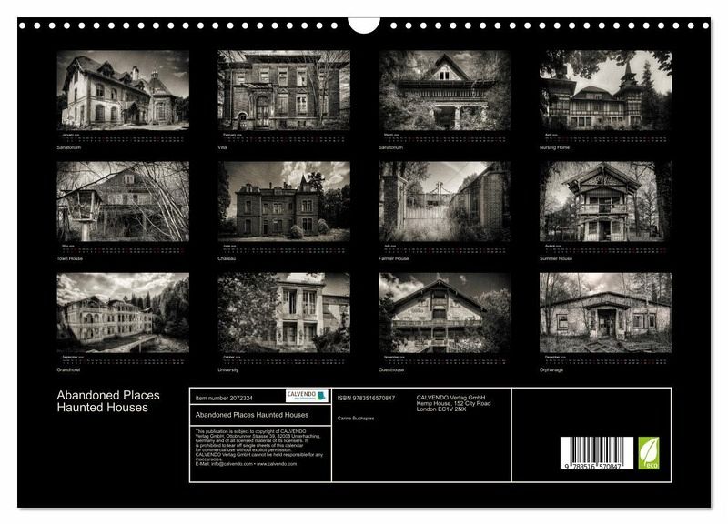 QUALITY - High-quality photo calendar with 12 beautiful images on light-resistant paper, robust spiral binding with hanger.SUSTAINABLE - Significant waste reduction due to print-on-demand production, environmentally friendly FSC-certified paper, produced in the UK, climate-conscious logistical processes.PERFECT GIFT - calendars for friends and family, for children, all ages and all occasions, from Christmas to birthdays and everything in between.LOTS OF CHOICE - Wall calendars in different sizes (DIN A4 and DIN A3), for any topic and personal taste, featuring photography, painting and illustrations.A journey to the most spooky houses., author: Sichtweisen