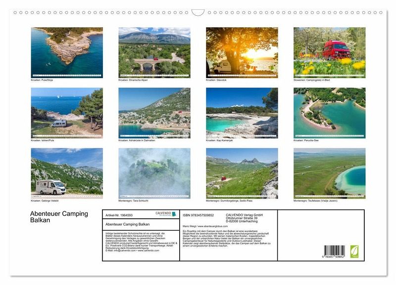 Ein Roadtrip mit dem Camper durch den Balkan ist eine wunderbare Möglichkeit die beeindruckende Natur und die abwechslungsreiche Landschaft dieser Region zu erkunden. Mit seinen malerischen Küsten, majestätischen Bergen und der unberührten Natur bietet der Balkan ein unvergessliches Campingabenteuer für Naturbegeisterte und Outdoor-Liebhaber. Dieser Kalender zeigt atemberaubende Stellplätze, die das Campen auf dem Balkan zu einem unvergesslichen Erlebnis machen.