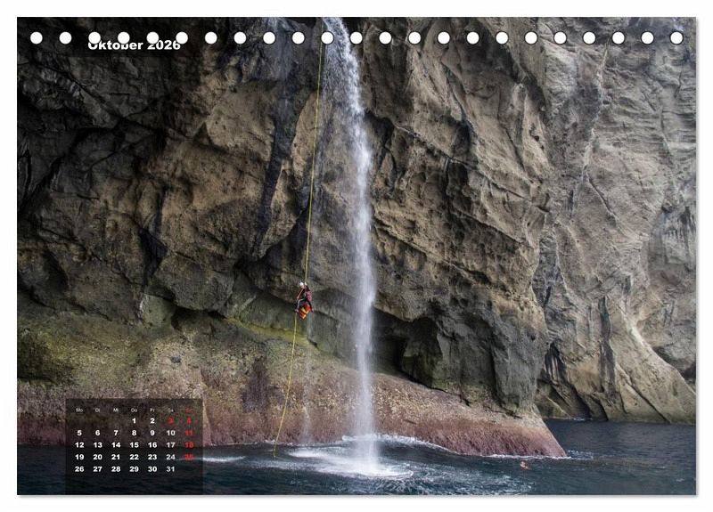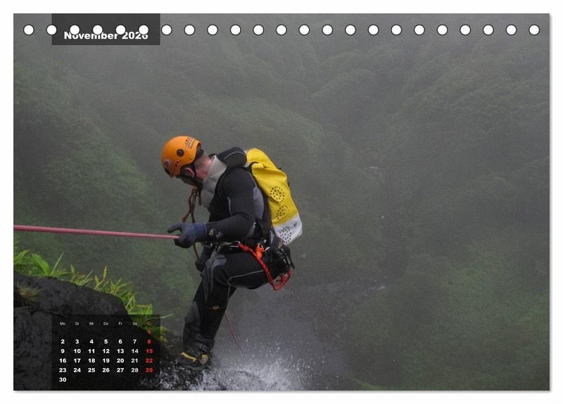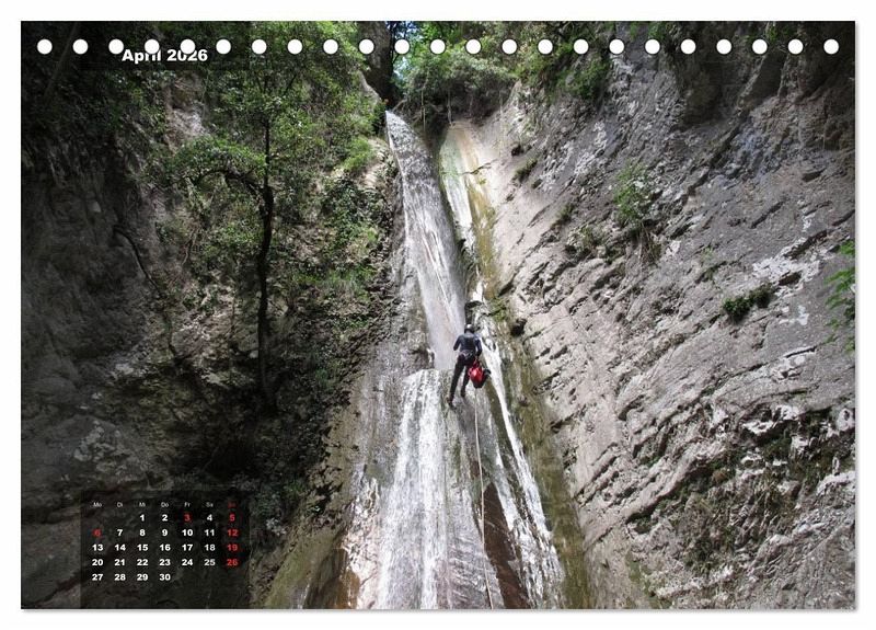 Eng rücken die Felswände zusammen. Das Wasser brodelt, stürzt viele Meter in den Abgrund. Dann wieder Pools, in denen Sonnenstrahlen tanzen und Eidechsen über die Steine huschen. Beim Canyoning folgt man dem Weg des Wassers, das im Laufe von Millionen Jahren enge Klammen und tiefe Schluchten ins Gestein gegraben hat. Nervenkitzel vereint sich mit stillen Naturerlebnissen, scheinbar bekannte Bergregionen werden völlig neu entdeckt. Ein Monatskalender mit faszinierenden Bildern von Canyoning-Touren auf der ganzen Welt.