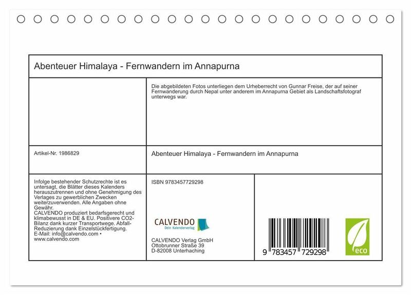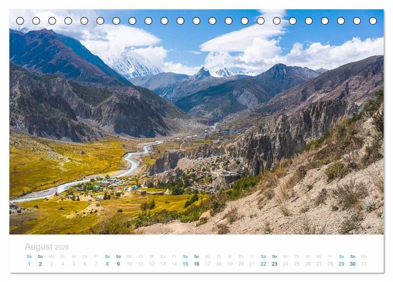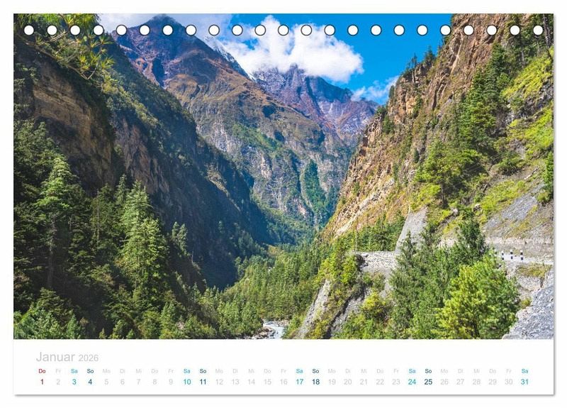 Gehen Sie mit diesem einmaligen Kalender auf eine spannende und aufregende Bilderreise und wandern Sie durch den Himalaya in der Region Annapurna in Nepal. Verschiedenste Vegetationen wie Regenwald über trockene karge Berge bis hin auf den berühmten Thorung La Pass auf 5416m. Die mächtigen Täler berichten aus der Vergangenheit und verzaubern den Betrachter. Lassen Sie sich inspirieren bei der Wanderung durch den Himalaya.