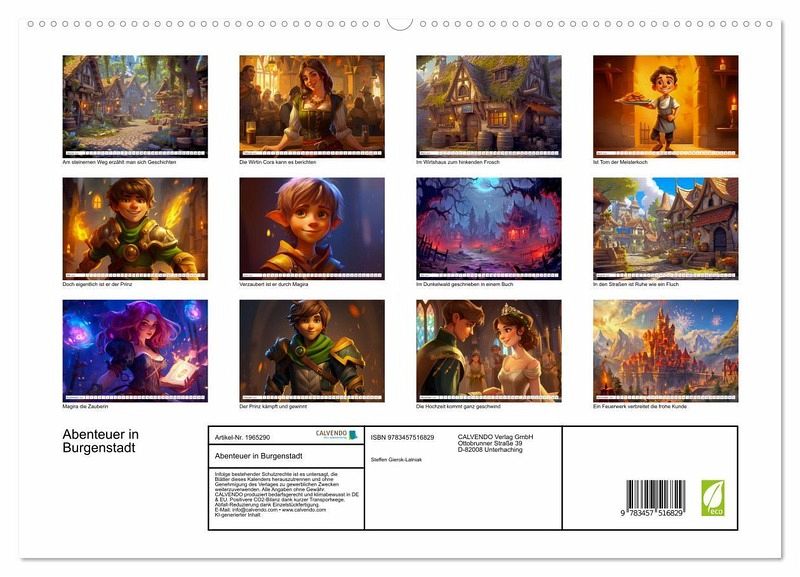 PREMIUM-LINIE - Brillanter Fotokalender mit 12 wunderschönen Motiven, Kunstdruck in Hochglanz in Museumsqualität.QUALITÄT - edle Materialien, stabile Rückwand mit 2 innovativen Einstecktaschen für eine optimale Präsentation an der Wand.NACHHALTIG - deutliche Abfallreduzierung durch bedarfsgerechte Einzelstückfertigung, umweltfreundliches FSC-zertifiziertes Papier, Produktion in Deutschland, klimabewusste Logistik.PERFEKTES GESCHENK - Kalender für Freunde und Familie, für Kinder und Erwachsene, jung und alt, zu Weihnachten, Geburtstag oder zwischendurch.Abenteuer in Burgenstadt ist eine Geschichte über den Prinzen der einst ein Koch war und durch Hilfe des Elfenjungen zum König wird. von Autor(in): Steffen Gierok ; Magik Artist Design