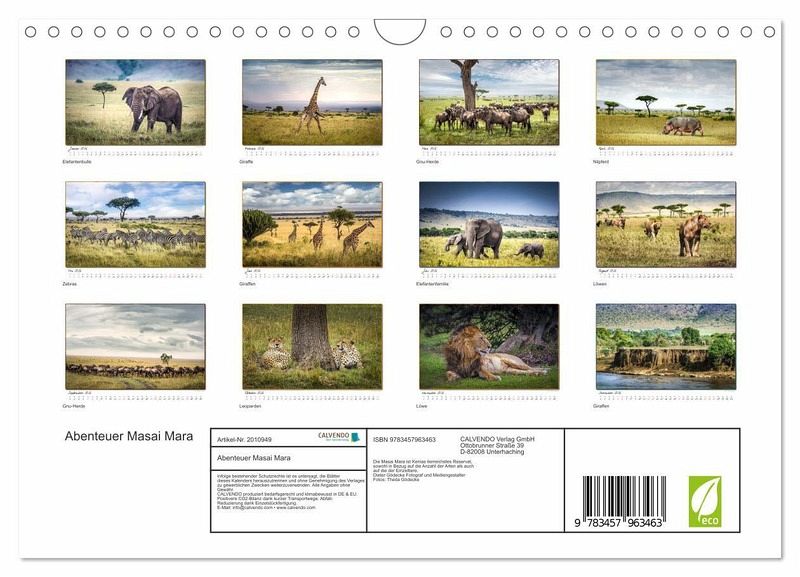 QUALITÄT - Hochwertiger Fotokalender mit 12 wunderschönen Motiven auf lichtbeständigem Bilderdruckpapier, robuste Spiralbindung mit Aufhängebügel.NACHHALTIG - deutliche Abfallreduzierung durch bedarfsgerechte Einzelstückfertigung, umweltfreundliches FSC-zertifiziertes Papier, Produktion in Deutschland, klimabewusste Logistik.PERFEKTES GESCHENK - Kalender für Freunde und Familie, für Kinder und Erwachsene, jung und alt, zu Weihnachten, Geburtstag oder zwischendurch.VIELFALT - Bildkalender in verschiedenen Formaten, z.B. DIN A5, DIN A4, DIN A3 sowie DIN A2. Ob Naturmotiv, Gemälde oder Fotos, ideal für ein persönliches Wohlfühlambiente.Die Masai Mara ist Kenias tierreichstes Reservat, sowohl in Bezug auf die Anzahl der Arten als auch auf die der Einzeltiere. von Autor(in): Dieter Gödecke