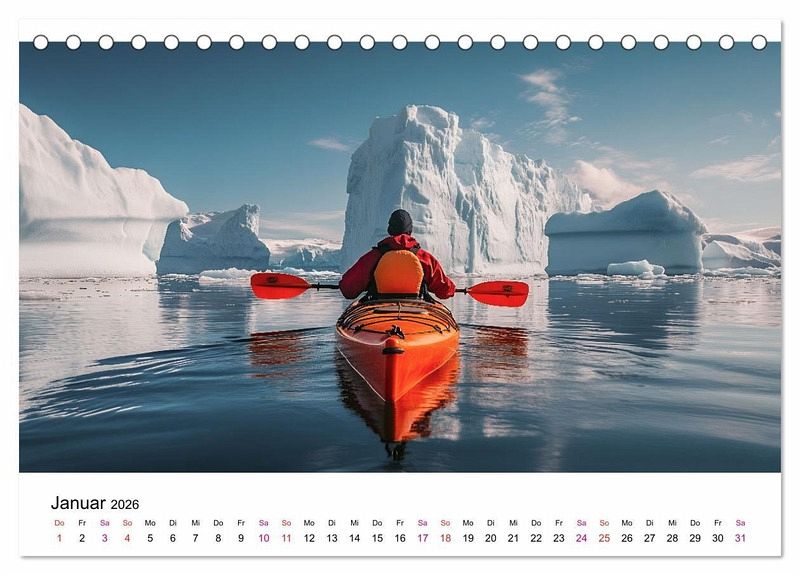 Sportliebhaber und Abenteurer aufgepasst. Machen Sie sich bereit für neue Abenteuer mit diesem Kalender. Er ist vollgepackt mit aufregenden Erlebnissen und außergewöhnlichen Aktivitäten in der freien Natur. Ob es gilt aufragende Klippen zu erklimmen, wilde Stromschnellen zu bezwingen oder durch die eisigen Gewässer Grönlands zu paddeln - jeder Monat bietet ein erlebnisreiches Abenteuer und sportliche Herausforderungen. Der Fotokünstler Peter Roder hat beeindruckende KI-Bilder gestaltet und zusammengestellt. Ein Muss für jeden Sportler, jede Sportlerin und alle, die Abenteuer in der Natur lieben und genießen wollen.