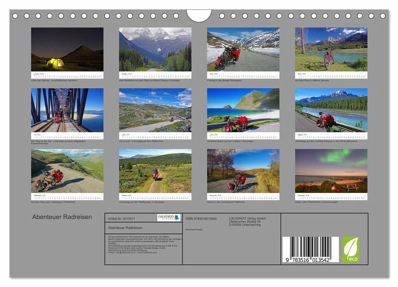 QUALITÄT - Hochwertiger Fotokalender mit 12 wunderschönen Motiven auf lichtbeständigem Bilderdruckpapier, robuste Spiralbindung mit Aufhängebügel.NACHHALTIG - deutliche Abfallreduzierung durch bedarfsgerechte Einzelstückfertigung, umweltfreundliches FSC-zertifiziertes Papier, Produktion in Deutschland, klimabewusste Logistik.PERFEKTES GESCHENK - Kalender für Freunde und Familie, für Kinder und Erwachsene, jung und alt, zu Weihnachten, Geburtstag oder zwischendurch.VIELFALT - Bildkalender in verschiedenen Formaten, z.B. DIN A5, DIN A4, DIN A3 sowie DIN A2. Ob Naturmotiv, Gemälde oder Fotos, ideal für ein persönliches Wohlfühlambiente.Der Kalender zeigt in fasznierenden Bildern Impressionen langer Radreisen in verschiedenen Ländern von Autor(in): Reinhard Pantke