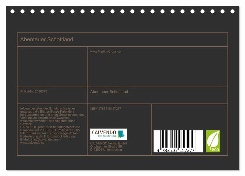 QUALITÄT - Hochwertiger Fotokalender mit 12 wunderschönen Motiven auf lichtbeständigem Bilderdruckpapier, robuste Spiralbindung.NACHHALTIG - deutliche Abfallreduzierung durch bedarfsgerechte Einzelstückfertigung, umweltfreundliches FSC-zertifiziertes Papier, Produktion in Deutschland, klimabewusste Logistik.PERFEKTES GESCHENK - Kalender für Freunde und Familie, für Kinder und Erwachsene, jung und alt, zu Weihnachten, Geburtstag oder zwischendurch.VIELFALT - Bildkalender in verschiedenenFormaten, z.B. DIN A5, DIN A4, DIN A3 sowie DIN A2. Ob Naturmotiv, Gemälde oder Fotos, ideal für ein persönliches Wohlfühlambiente.Abenteuer Schottland, ein Land das immer eine Reise wert ist! von Autor(in): Martina Cross