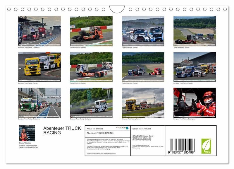 Der Autor und motorsportbegeisterte Fotograf beweist mit diesen exklusiven Aufnahmen, warum "Abenteuer TRUCK RACING" so besonders faszinierend ist. Der Betrachter der Kalenderbilder ist quasi live dabei, wenn die Fahrer ihre tonnenschweren Boliden auf dem anspruchsvollen Nürburgring am Limit bewegen und sich ein knallhartes Rennen liefern.
