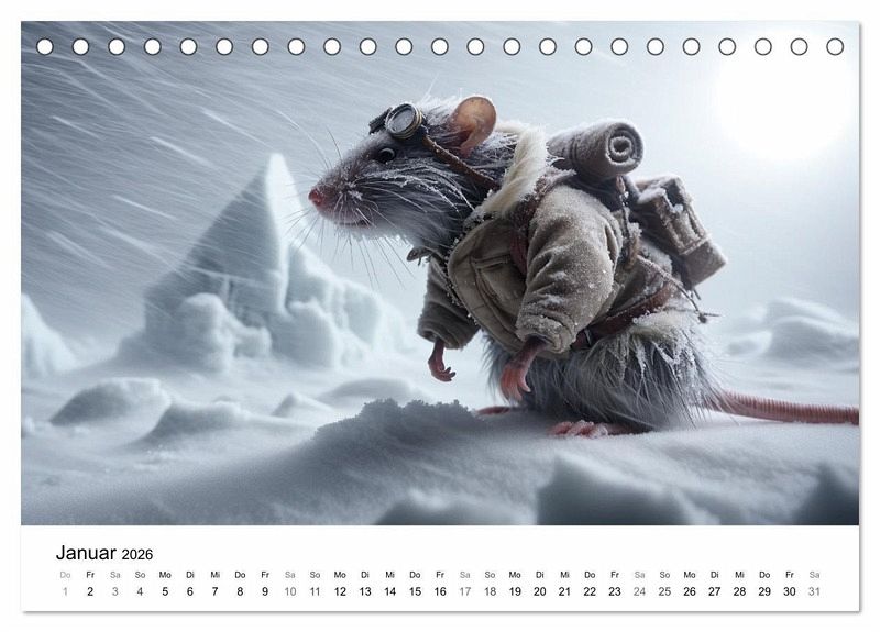 "Abenteuerliche Ratten" - Ein einzigartiger Kalender, der Sie durch das Jahr führt, begleitet von charmanten und humorvollen Rattenillustrationen. Für jeden Monat des Jahres präsentiert dieser Kalender eine entzückende Ratte, die in einer abenteuerlichen Aktivität oder Szene abgebildet ist. Von einer Arktis-Expedition im Januar bis zum Graffiti-Sprühen im Dezember - lassen Sie sich von diesen KI-generierten Bildern verzaubern und schmunzeln Sie über die kreativen und witzigen Darstellungen dieser kleinen Nager. Dieser Kalender ist das perfekte Geschenk für Rattenliebhaber und alle, die sich von einer Prise Humor durch das Jahr begleiten lassen möchten.
