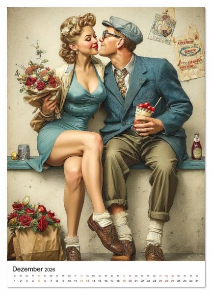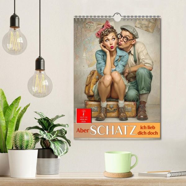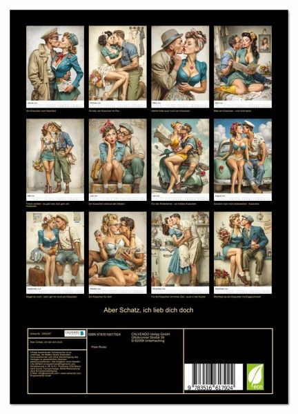 Aber Schatz - ich lieb dich doch, ein Kalender voller Retro-Romantik im Stil der 1930er Jahre. Zwölf liebevoll illustrierte Szenen zeigen das verrückte, witzige und manchmal skurrile Spiel der Liebe. Ob beim Abwasch, auf dem Bett oder wartend auf dem Koffer - die Liebe findet überall ihren Platz. Mit viel Charme und einem Augenzwinkern erzählt jedes liebevoll gestaltete KI-Bild eine kleine Retro-Romanze. Der authentische Vintage-Stil ist wie ein Fest für Nostalgiker, Verliebte und Liebhaber der guten alten Zeiten. Perfekt als Geschenk für alle, die sich gern charmant zurück in die 30er träumen…mehr