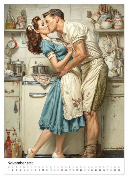 Aber Schatz - ich lieb dich doch, ein Kalender voller Retro-Romantik im Stil der 1930er Jahre. Zwölf liebevoll illustrierte Szenen zeigen das verrückte, witzige und manchmal skurrile Spiel der Liebe. Ob beim Abwasch, auf dem Bett oder wartend auf dem Koffer - die Liebe findet überall ihren Platz. Mit viel Charme und einem Augenzwinkern erzählt jedes liebevoll gestaltete KI-Bild eine kleine Retro-Romanze. Der authentische Vintage-Stil ist wie ein Fest für Nostalgiker, Verliebte und Liebhaber der guten alten Zeiten. Perfekt als Geschenk für alle, die sich gern charmant zurück in die 30er träumen und dabei vielleicht auf ein Küsschen warten.