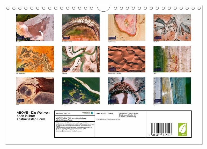 QUALITÄT - Hochwertiger Fotokalender mit 12 wunderschönen Motiven auf lichtbeständigem Bilderdruckpapier, robuste Spiralbindung mit Aufhängebügel.NACHHALTIG - deutliche Abfallreduzierung durch bedarfsgerechte Einzelstückfertigung, umweltfreundliches FSC-zertifiziertes Papier, Produktion in Deutschland, klimabewusste Logistik.PERFEKTES GESCHENK - Kalender für Freunde und Familie, für Kinder und Erwachsene, jung und alt, zu Weihnachten, Geburtstag oder zwischendurch.VIELFALT - Bildkalender in verschiedenen Formaten, z.B. DIN A5, DIN A4, DIN A3 sowie DIN A2. Ob Naturmotiv, Gemälde oder Fotos, ideal für ein persönliches Wohlfühlambiente.Mit der Drohne fotografiert und von unten unsichtbar - Unnatürlich natürlich. von Autor(in): Sonja Schlichter